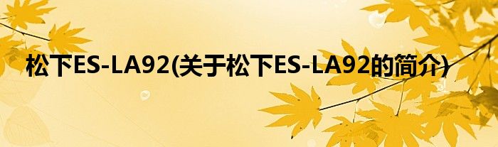 本文关于松下ES-LA92的简介就讲解完毕,希望对大家有所帮助。