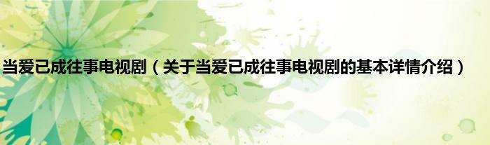 当爱已成往事电视剧(关于当爱已成往事电视剧的基本详情介绍)