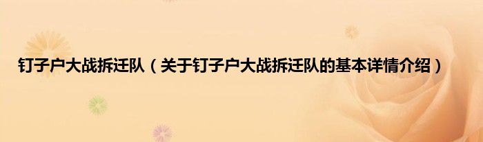 本文关于钉子户大战拆迁队的基本详情介绍就讲解完毕,希望对大家有所帮助。