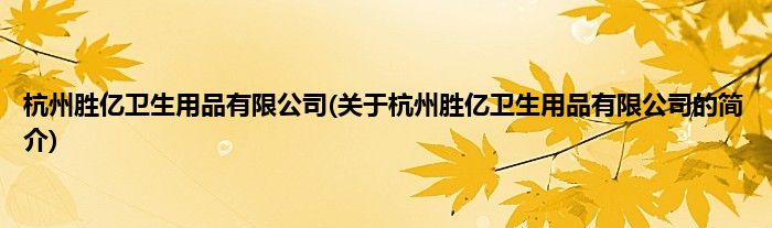 本文关于杭州胜亿卫生用品有限公司的简介就讲解完毕,希望对大家有所帮助。