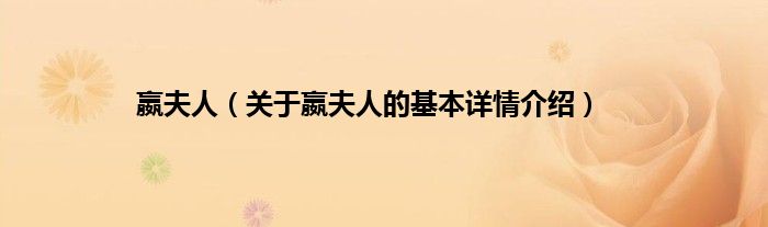 嬴夫人(关于嬴夫人的基本详情介绍)