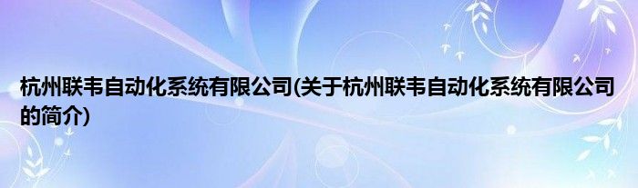 本文关于杭州联韦自动化系统有限公司的简介就讲解完毕,希望对大家有所帮助。