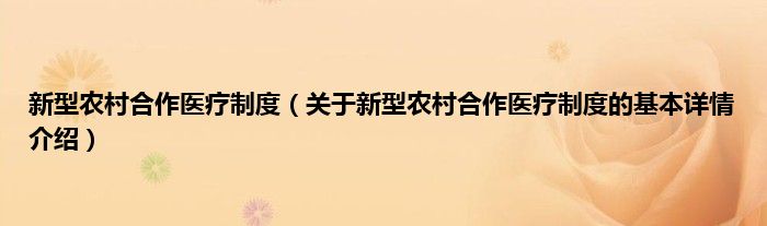 本文关于新型农村合作医疗制度的基本详情介绍就讲解完毕,希望对大家有所帮助。