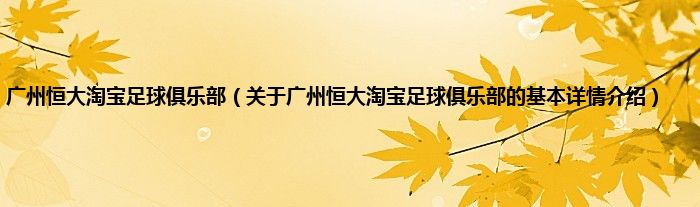 本文关于广州恒大淘宝足球俱乐部的基本详情介绍就讲解完毕,希望对大家有所帮助。