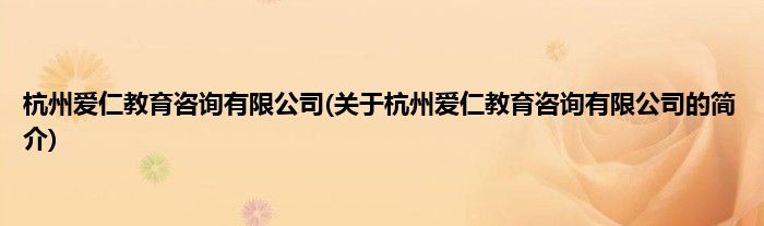 本文关于杭州爱仁教育咨询有限公司的简介就讲解完毕,希望对大家有所帮助。