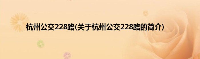 杭州公交228路(关于杭州公交228路的简介)