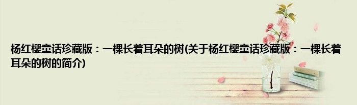 本文关于杨红樱童话珍藏版:一棵长着耳朵的树的简介就讲解完毕,希望对大家有所帮助。