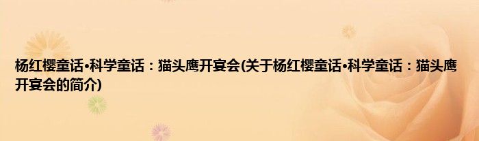 本文关于杨红樱童话·科学童话:猫头鹰开宴会的简介就讲解完毕,希望对大家有所帮助。
