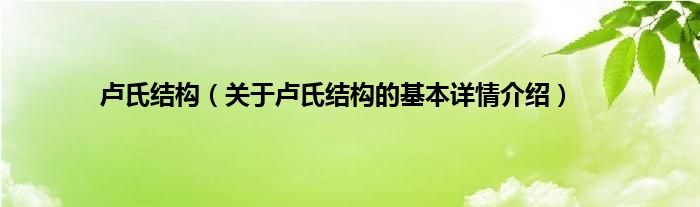 本文关于卢氏结构的基本详情介绍就讲解完毕,希望对大家有所帮助。