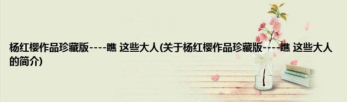 杨红樱作品珍藏版----瞧 这些大人(关于杨红樱作品珍藏版----瞧 这些大人的简介)