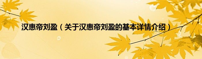 本文关于汉惠帝刘盈的基本详情介绍就讲解完毕,希望对大家有所帮助。