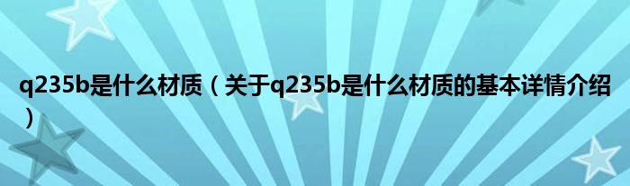 本文关于q235b是什么材质的基本详情介绍就讲解完毕,希望对大家有所帮助。