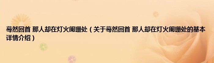 本文关于蓦然回首 那人却在灯火阑珊处的基本详情介绍就讲解完毕,希望对大家有所帮助。