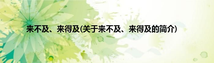 大家好,来不及、来得及,关于来不及、来得及的简介很多人还不知道,现在让我们一起来看看吧!