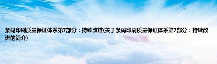 1、 《条码印刷质量保证体系第7部分:持续改进》是2019年8月27日发布的一项行业标准。