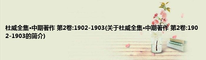 本文关于杜威全集·中期著作 第2卷:1902-1903的简介就讲解完毕,希望对大家有所帮助。