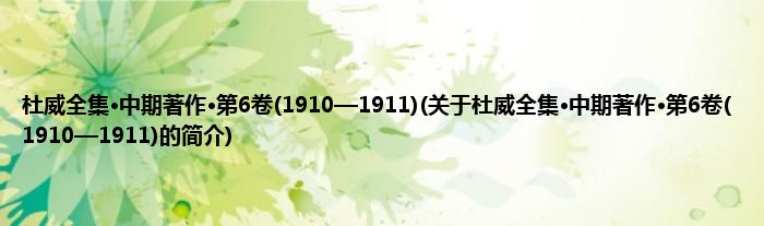本文关于杜威全集·中期著作·第6卷(1910—1911)的简介就讲解完毕,希望对大家有所帮助。