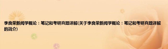 本文关于李良荣新闻学概论:笔记和考研真题详解的简介就讲解完毕,希望对大家有所帮助。
