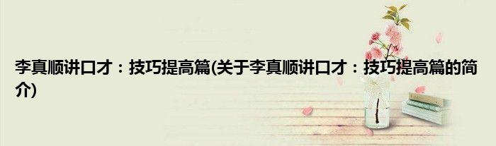 本文关于李真顺讲口才:技巧提高篇的简介就讲解完毕,希望对大家有所帮助。