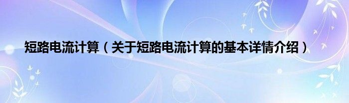 短路电流计算(关于短路电流计算的基本详情介绍)