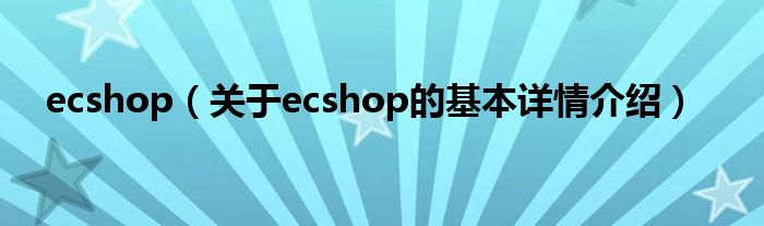 ecshop(关于ecshop的基本详情介绍)