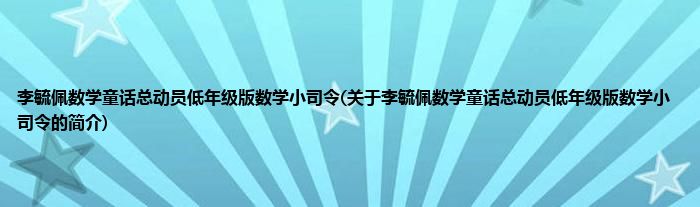 本文关于李毓佩数学童话总动员低年级版数学小司令的简介就讲解完毕,希望对大家有所帮助。