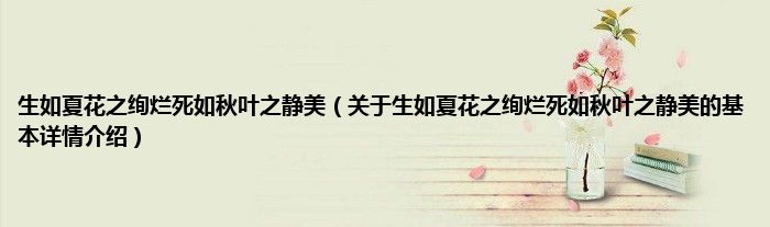 生如夏花之绚烂死如秋叶之静美(关于生如夏花之绚烂死如秋叶之静美的基本详情介绍)