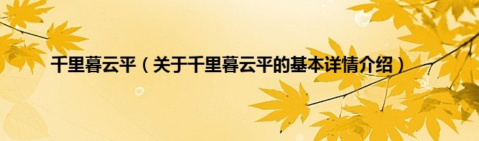 千里暮云平(关于千里暮云平的基本详情介绍)