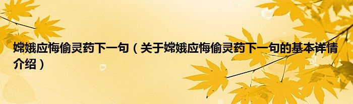 本文关于嫦娥应悔偷灵药下一句的基本详情介绍就讲解完毕,希望对大家有所帮助。