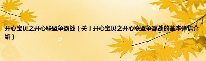 本文关于开心宝贝之开心联盟争霸战的基本详情介绍就讲解完毕,希望对大家有所帮助。