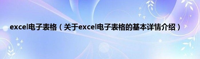 本文关于excel电子表格的基本详情介绍就讲解完毕,希望对大家有所帮助。