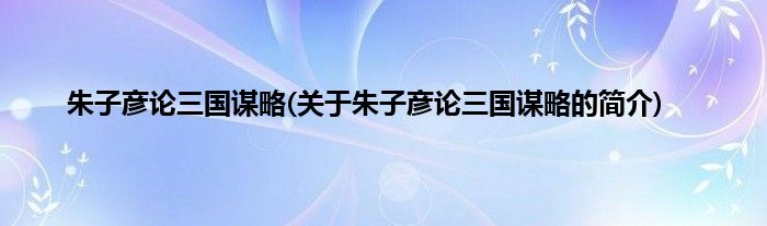 本文关于朱子彦论三国谋略的简介就讲解完毕,希望对大家有所帮助。