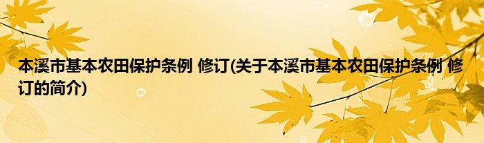 本文关于本溪市基本农田保护条例 修订的简介就讲解完毕,希望对大家有所帮助。
