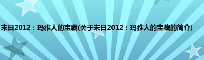 本文关于末日2012:玛雅人的宝藏的简介就讲解完毕,希望对大家有所帮助。