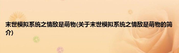 本文关于末世模拟系统之情敌是萌物的简介就讲解完毕,希望对大家有所帮助。
