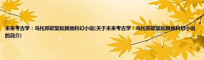 本文关于未来考古学:乌托邦欲望和其他科幻小说的简介就讲解完毕,希望对大家有所帮助。