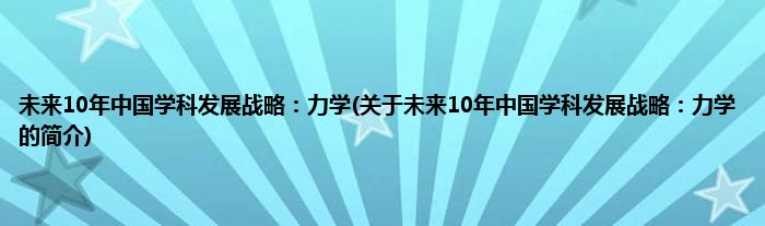 大家好,未来10年中国学科发展战略:力学,关于未来10年中国学科发展战略:力学的简介很多人还不知道,现在让我们一起来看看吧!