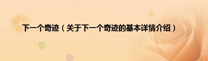 下一个奇迹(关于下一个奇迹的基本详情介绍)