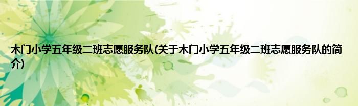 大家好,木门小学五年级二班志愿服务队,关于木门小学五年级二班志愿服务队的简介很多人还不知道,现在让我们一起来看看吧!