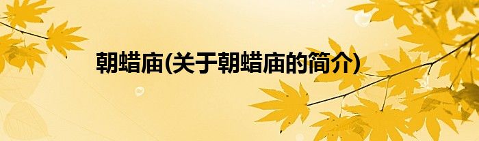 大家好,朝蜡庙,关于朝蜡庙的简介很多人还不知道,现在让我们一起来看看吧!