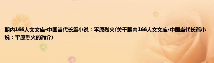 本文关于朝内166人文文库·中国当代长篇小说:平原烈火的简介就讲解完毕,希望对大家有所帮助。