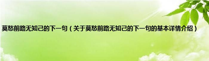 本文关于莫愁前路无知己的下一句的基本详情介绍就讲解完毕,希望对大家有所帮助。