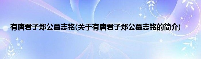 本文关于有唐君子郑公墓志铭的简介就讲解完毕,希望对大家有所帮助。