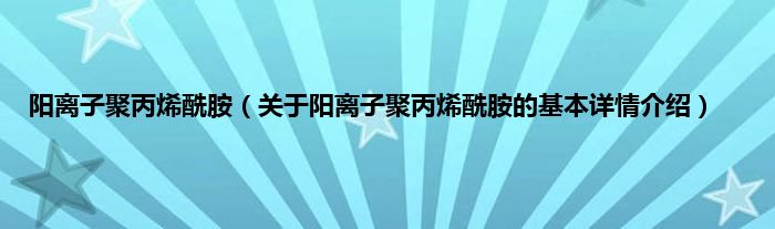 本文关于阳离子聚丙烯酰胺的基本详情介绍就讲解完毕,希望对大家有所帮助。