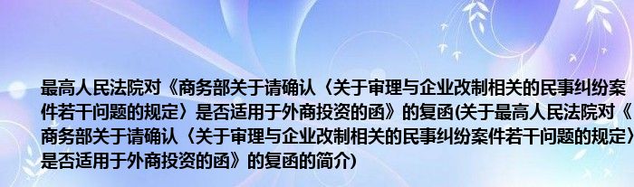 本文关于最高人民法院对《商务部关于请确认〈关于审理与企业改制相关的民事纠纷案件若干问题的规定〉是否适用于外商投资的函》的复函的简介就讲解完毕,希望对大家有所帮助。