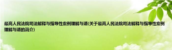 大家好,最高人民法院司法解释与指导性案例理解与适,关于最高人民法院司法解释与指导性案例理解与适的简介很多人还不知道,现在让我们一起来看看吧!