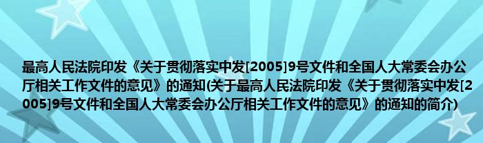 本文关于最高人民法院印发《关于贯彻落实中发[2005]9号文件和全国人大常委会办公厅相关工作文件的意见》的通知的简介就讲解完毕,希望对大家有所帮助。