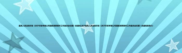 本文关于最高人民法院印发《关于印发审理公司强制清算案件工作座谈会纪要》的通知的简介就讲解完毕,希望对大家有所帮助。