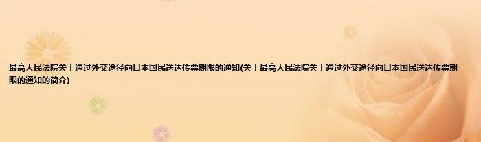 本文关于最高人民法院关于通过外交途径向日本国民送达传票期限的通知的简介就讲解完毕,希望对大家有所帮助。