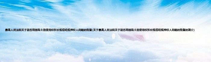 本文关于最高人民法院关于能否将国有土地使用权折价抵偿给抵押权人问题的批复的简介就讲解完毕,希望对大家有所帮助。
